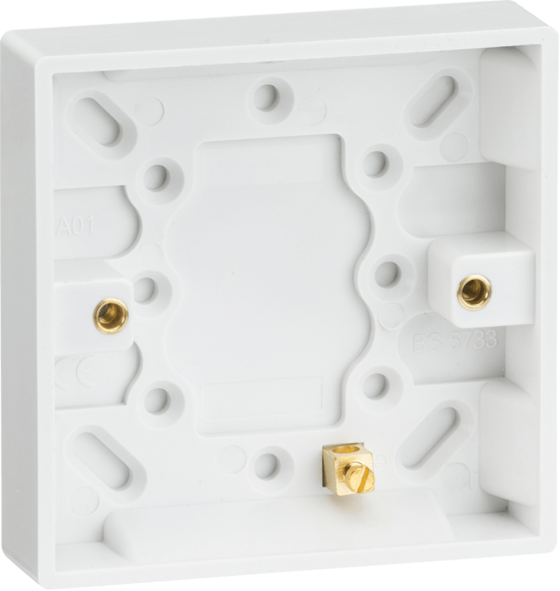 Knightsbridge's Square Edge for use with the square edge range. Single 16mm Pattress Box with Earth Terminal. General Information Plate Dimensions: 86mm (W) x 86mm (H) x 21mm (D) Manufacture ... Read More