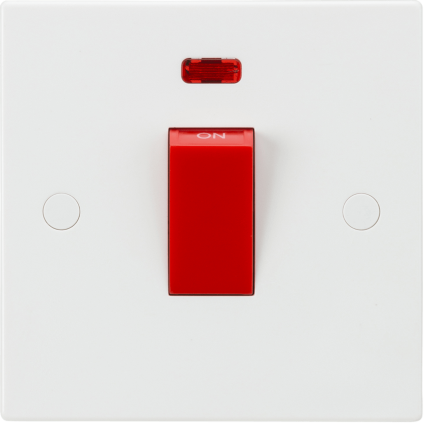 Knightsbridge's Square Edge slimline profile with screw cap covers to create a clean finish. Hard wearing, durable, scratch resistant thermoset material. 45A 1 Gang Double Pole Switch with N ... Read More