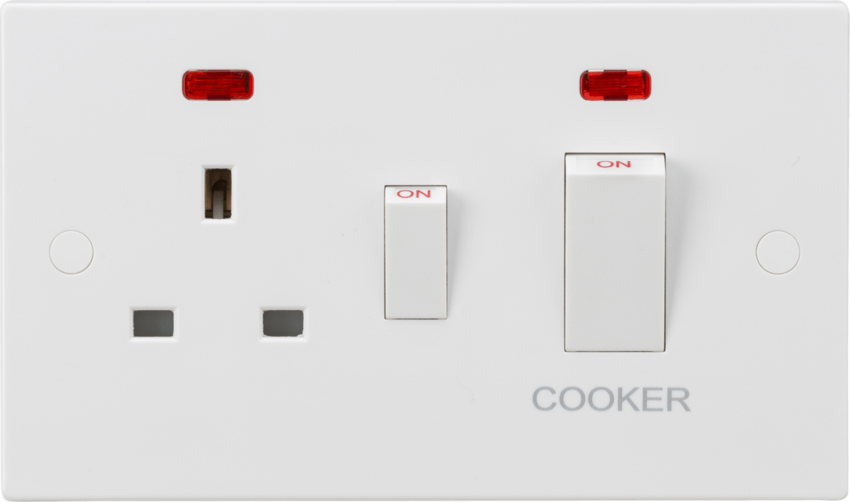 45A Double Pole Cooker Switch and 13A Socket with Neon with White Rocker.