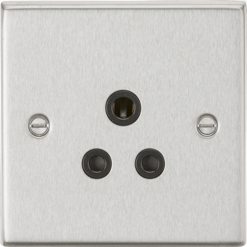 Knightsbridge Square Edge CS5ABC 5A Unswitched Socket Brushed Chrome -Black Insert