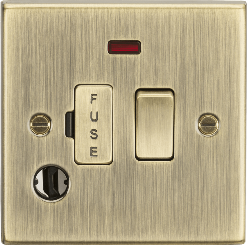Knightsbridge Square Edge CS63FAB 13A Switched Fused Spur Unit with Neon & Flex Outlet Antique Brass