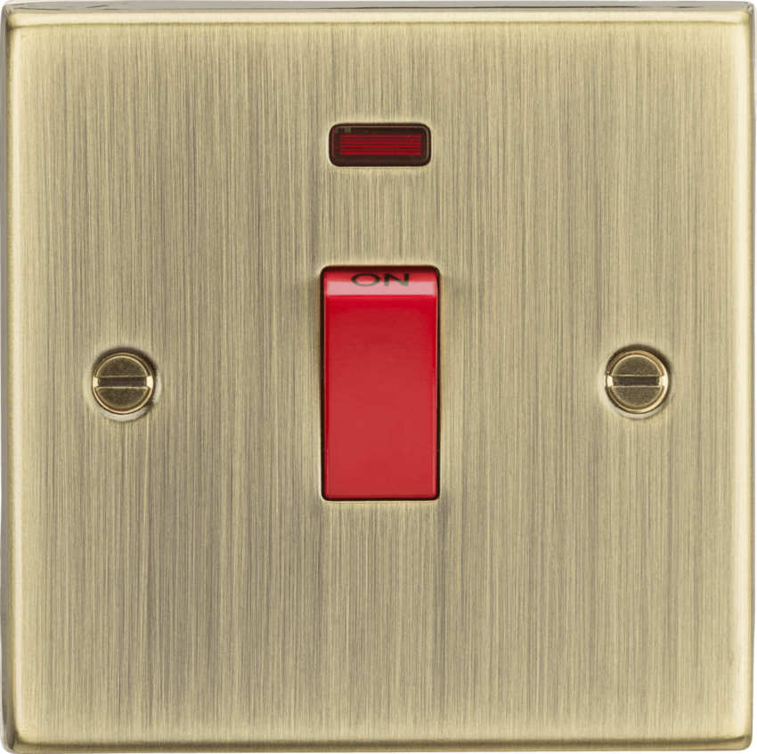 Knightsbridge Square Edge CS81NAB 45A DP Switch with Neon Antique Brass