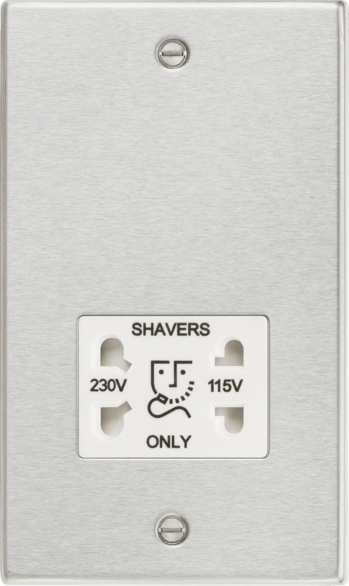 Knightsbridge Square Edge CS89BCW Dual Voltage Shaver Socket (115/230V) Brushed Chrome -White Insert