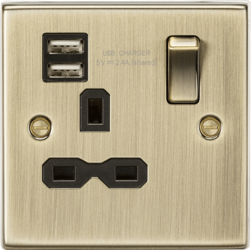Knightsbridge Square Edge CS9124AB 13A 1G Switched Socket Dual USB Charger Slots AB -Black Insert