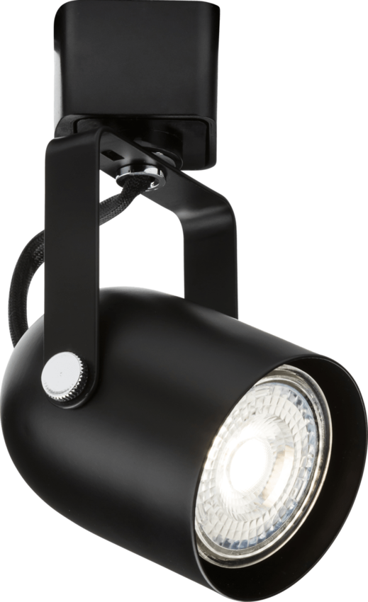 Knightsbridge Adjustable GU10 Directional Track Spotlight. Manufactured from die-cast aluminum, complete with plastic track connector. Compatible with standard retrofit GU10 lamps (lamp not included).