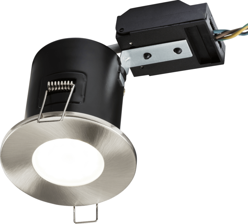 Fixed Fire-Rated Downlight with Brushed Chrome Bezel. A great range with fast-fix installation, push-fit terminals and loop in/ loop out. LED/ halogen compatible and IC rated when used with a max. 6W LED lamp.