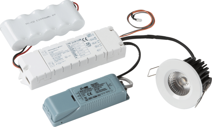 Emergency 3 hour conversion kit for Knightsbridge 7W and 8W LED Fire-rated downlight. Supplied with simple plug and play connectors. Comes with battery and inverter and built in LED charge i ... Read More