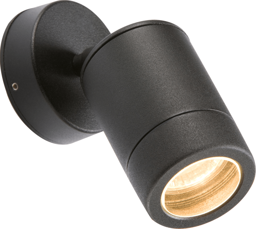 Knightsbridge's Adjustable Wall Light. Stylish, circular design ideal to brighten any outdoor space. Lamp not included. General Information Dimensions: 64mm (Dia) x 145mm (H) Projectio ... Read More