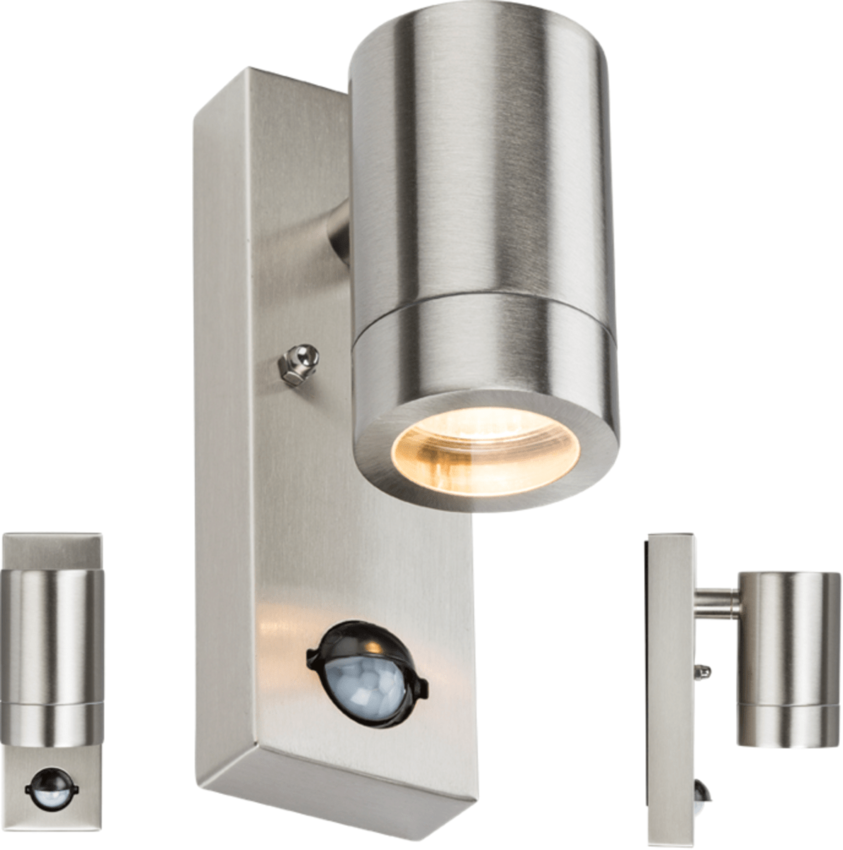 Knightsbridge WALL5LSS 230V Fixed Wall Light with PIR - GU10 - IP44 - Stainless Steel
