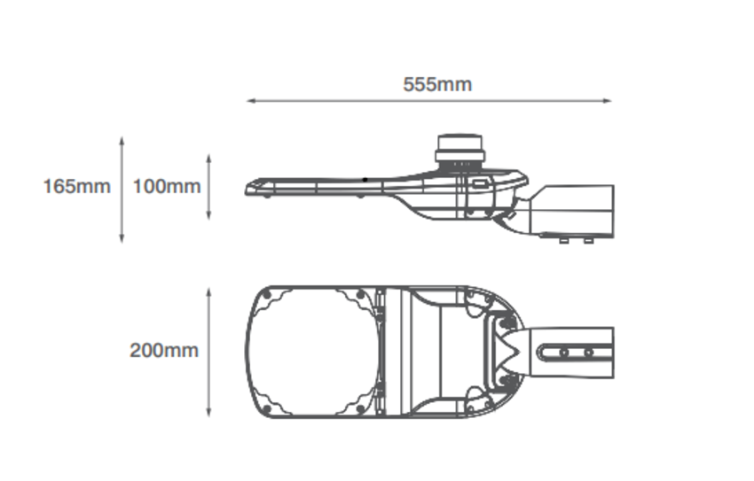 - Dimensions: 555mm (L) x 200mm (W) x 100mm (Dia)