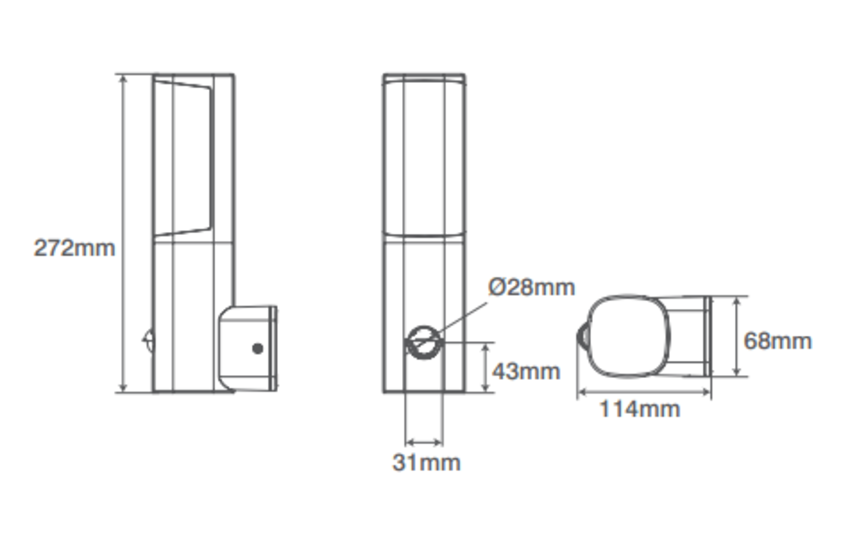 - Dimensions (mm): 68 (W) x 106 (D) x 272 (H)