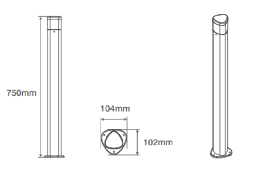 Ovia OV2714C7GY Triangular Maxi LED Bollard -CW - IP54 - 4000K - Grey- 7W
