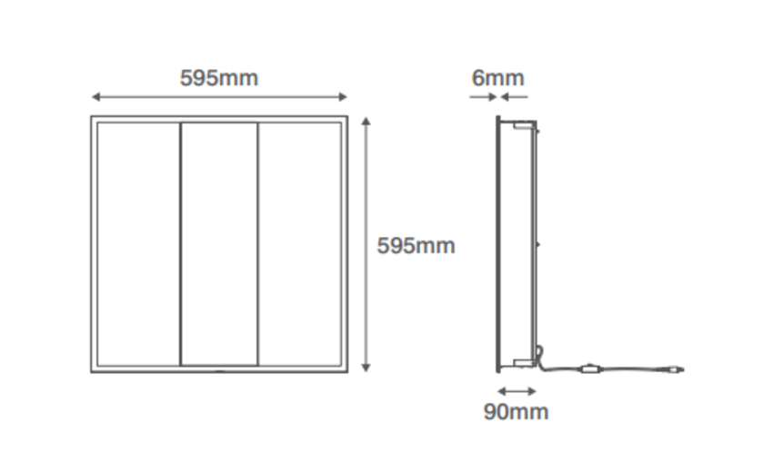 - Dimensions: 595mm (L) x 595mm (W) x 90mm (D)