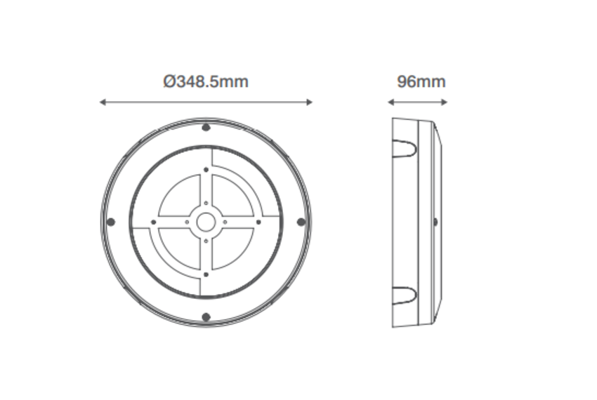 - Dimensions 348.5mm Diameter x 96mm (D)