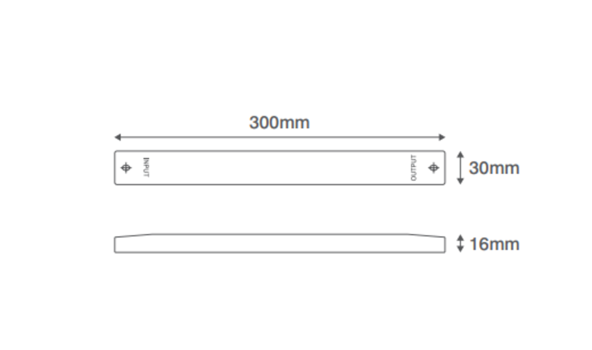 - Dimensions: 300mm (L) x 30mm (W) x 16mm (D)