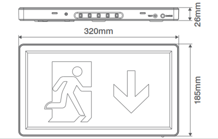 Ovia's Ernex Emergency LED Self-Test Box Maintained Sign. General Information Dimensions: 320mm (L) x 185mm (H) x 26mm (D) Materials Housing: Polycarbonate. Sign: Acrylic. Finish: White Prod ... Read More