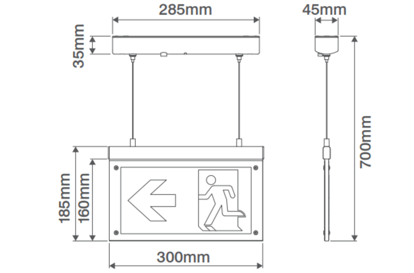Ovia OVEM4211LRST Vanex 2W Emergency LED Self-Test Maintained Suspended Sign - Left/Right Legend