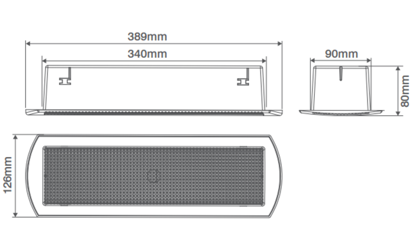 - Dimensions 389mm (L) x 126mm (H) x 80mm (D)