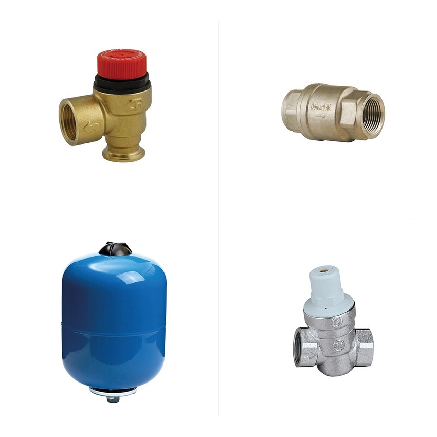 A mandatory installation kit for all models of Rointe Venice Compact unvented domestic water heaters. Consists of a pressure-reducing valve, expansion relief valve, expansion vessel and check valve.