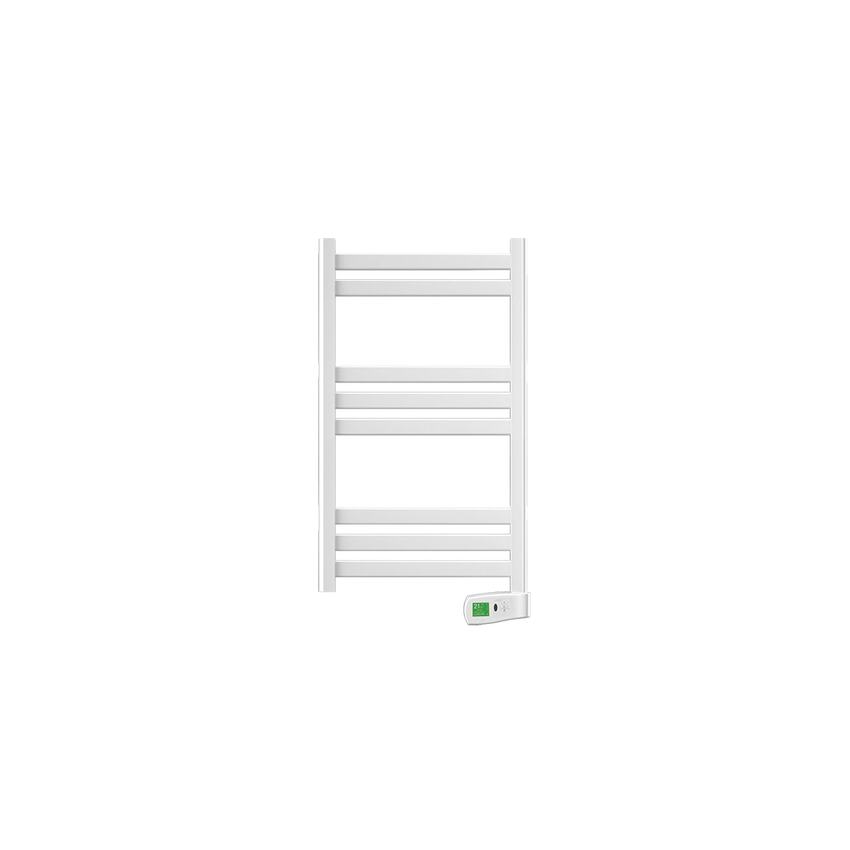 There is a practical boost function for added warmth, this electric towel heater is manufactured from high-quality steel and superior thermal fluid for optimum heat and comfort output. It has a modern design to fit with any bathroom décor and SMD electronics for better efficiency. Class II protection and a fire-retardant control panel mean this heated towel rail is a safe option for bathroom heating.