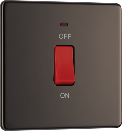 BG Flatplate FBN74 Screwless 45A Single Plate Cooker Switch - Black Nickel