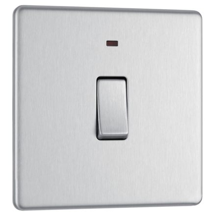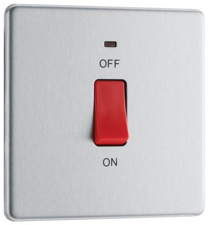 BG Flatplate FBS74 Screwless 45A Single Plate Cooker Switch - Brushed Steel