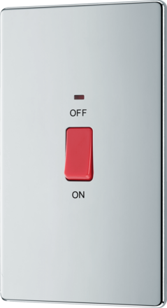 BG Flatplate FPC72 Screwless 45A Double Plate Cooker Switch - Polished Chrome