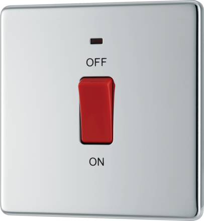 BG Flatplate FPC74 Screwless 45A Single Plate Cooker Switch - Polished Chrome