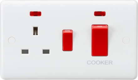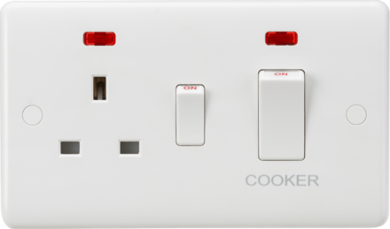 Knightsbridge CU8333NW 45A DP Cooker Switch and 13A Switched Socket with Neon (White Rocker)