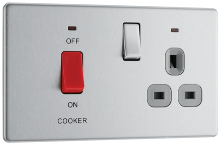 BG Flatplate FBS72 Screwless 45A Double Plate Cooker Switch - Brushed Steel