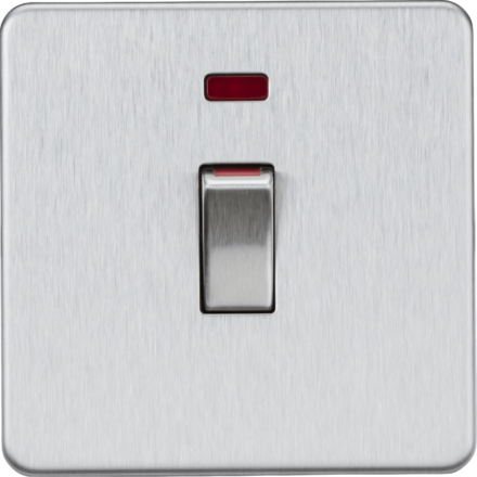 Knightsbridge Screwless SF81MNBC 45A 1G DP Switch with Neon - Brushed Chrome