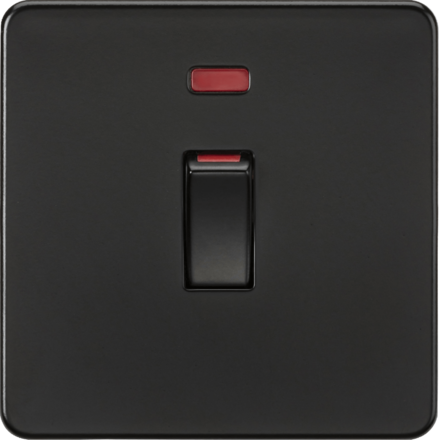 Knightsbridge Screwless SF81MNMBB 45A 1G DP Switch with Neon - Matt Black