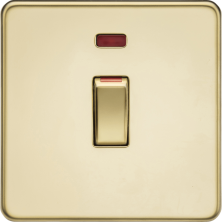 Knightsbridge Screwless SF81MNPB 45A 1G DP Switch with Neon - Polished Brass