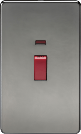 Knightsbridge Screwless SFR83MNBN 45A DP Switch & 13A Switched Socket with Neon - Black Nickel