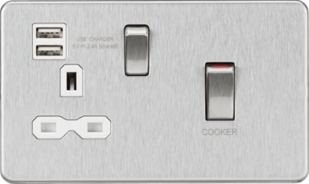 Knightsbridge Screwless SFR83UMBCW 45A DP Switch & 13A Switched Socket with Dual USB Charger - Brushed Chrome - White Insert