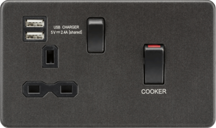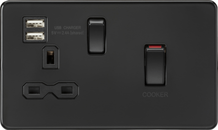 Knightsbridge Screwless SFR83UMMBB 45A DP Switch & 13A Switched Socket with Dual USB Charger - Matt Black
