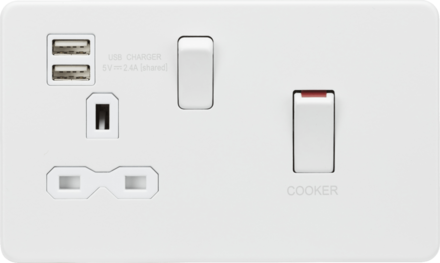 Knightsbridge Screwless SFR83UMMW 45A DP Switch & 13A Switched Socket with Dual USB Charger - Matt White