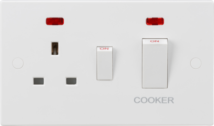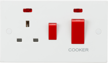 Knightsbridge SN8333NW 45A Double Pole Cooker Switch and 13A Socket with Neons (White Rocker)