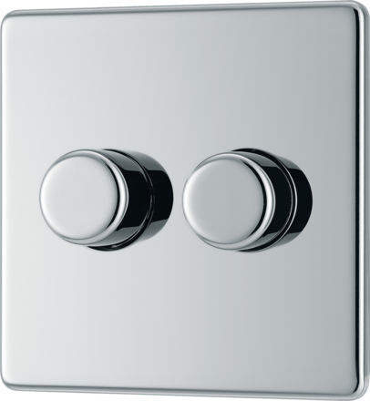 BG Flatplate FPC82 Screwless 2G 2 way Push Type Dimmer Switch 200W - Polished Chrome