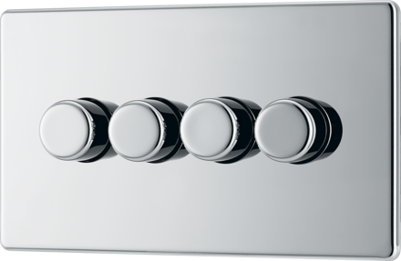 BG Flatplate FPC84 Screwless 4G 2 way Push Type Dimmer Switch 200W - Polished Chrome