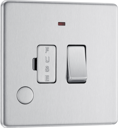 BG Flatplate FBS52 Screwless 13A Switched Fused Spur with Power Indicator - Brushed Steel