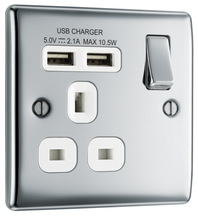 BG Nexus NPC21U2W 1G 2USB 2.1A Switched Socket - Polished Chrome