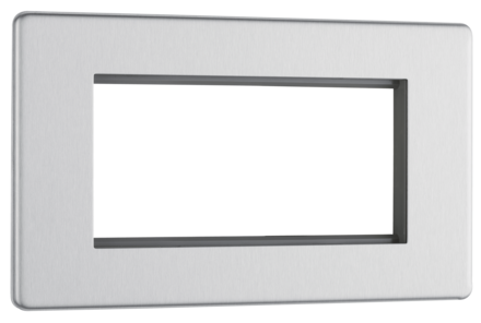 BG Flatplate FBSEMR4 Screwless Euro Module Quad Double Front Plate - Brushed Steel