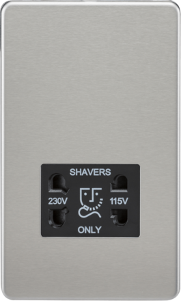Knightsbridge Screwless SF8900BC Dual Voltage Shaver Socket (115V/230V) - Brushed Chrome - Black Insert