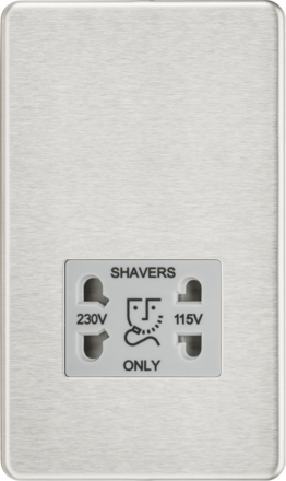 Knightsbridge Screwless SF8900BCG Dual Voltage Shaver Socket (115V/230V) - Brushed Chrome - Grey Insert