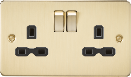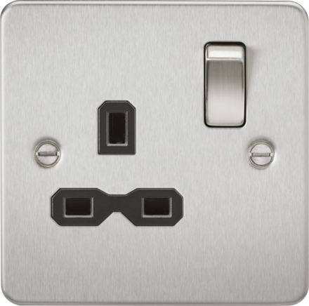 Knightsbridge Flat Plate FPR7000BC 13A 1G DP Switched Socket BC -Black Insert