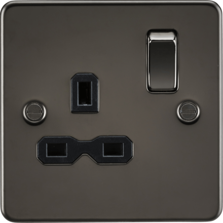 Knightsbridge Flat Plate FPR7000GM 13A 1G DP Switched Socket - Gunmetal