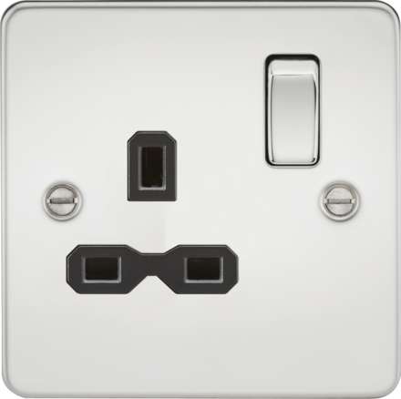 Knightsbridge Flat Plate FPR7000PC 13A 1G DP Switched Socket PC -Black Insert