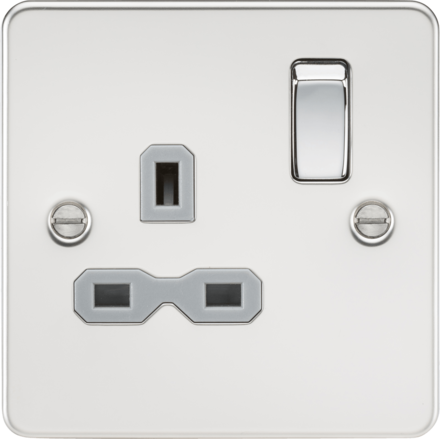 Knightsbridge Flat Plate FPR7000BCG 13A 1G DP Switched Socket BC -Grey Insert