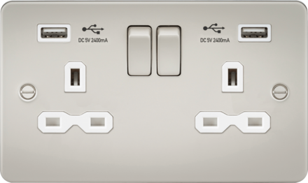 Knightsbridge Flat Plate FPR9224PLW 13A 2G Switched Socket with Dual USB Charger (A+A) Pearl -White Insert